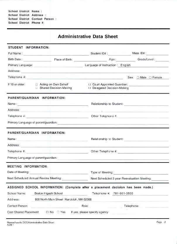 Administrative Data Sheet