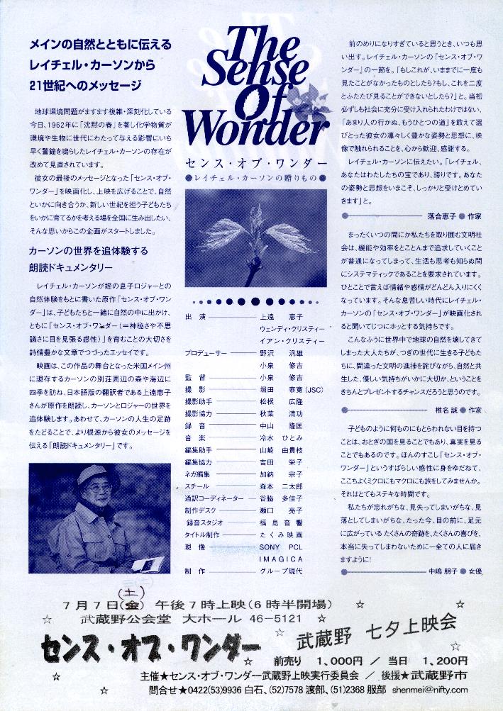 センス・オブ・ワンダー 武蔵野七夕上映会 7月7日(土) 7時より 武蔵野公会堂